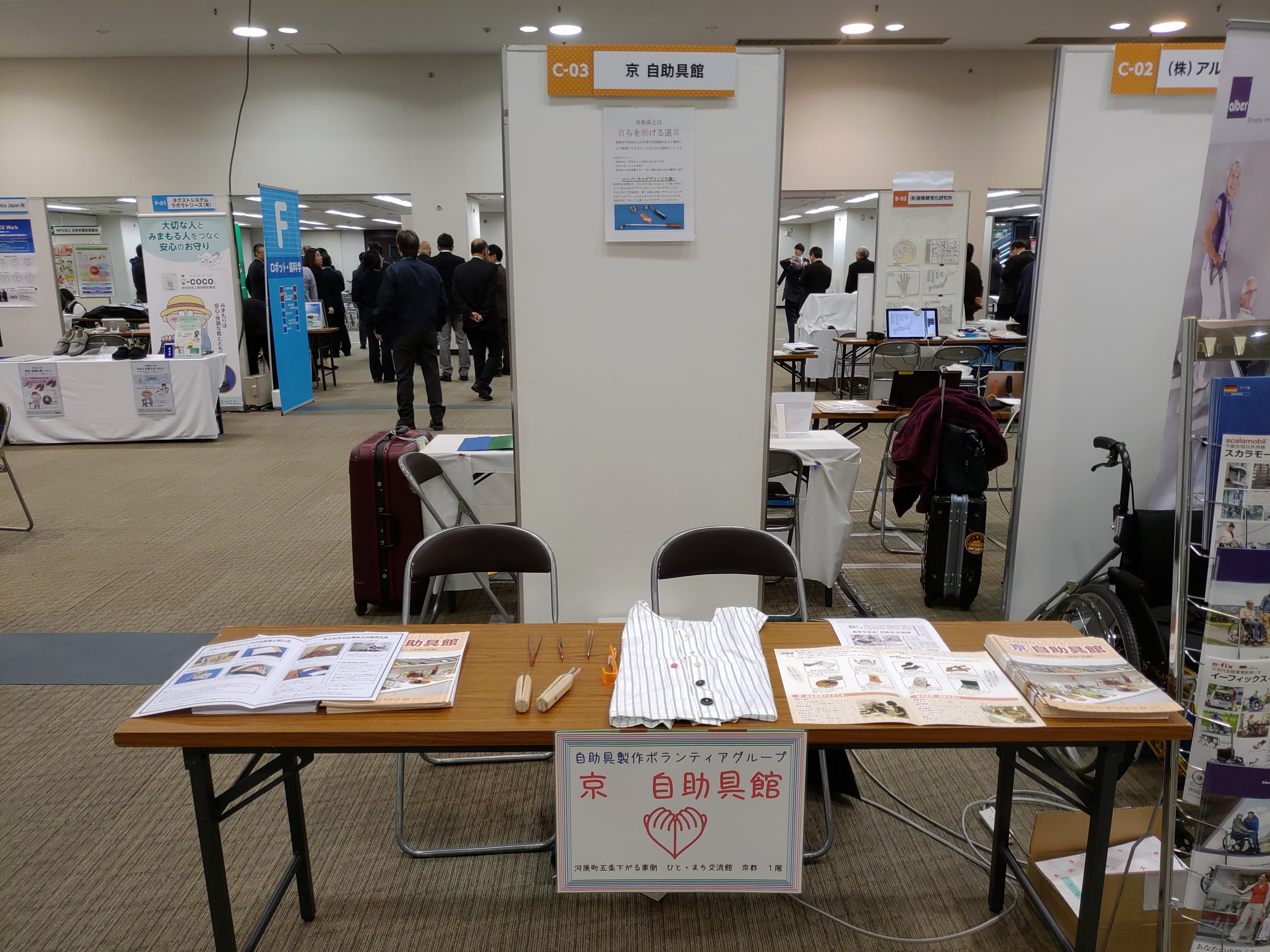 12月 28, 20181月 14, 2019 京 自助具館 2019年12月18・19日 シーズ・ニーズマッチング交流会2018 in大阪 会場風景 今年はピンセット型ボタンエイドを展示。従来品との違いや使い方を説明しました。自助具のボランティアグループの出展は珍しいので、感心のある人は熱心に話を聞いてくれました。 共有: クリックして X で共有 (新しいウィンドウで開きます) X Facebook で共有するにはクリックしてください (新しいウィンドウで開きます) Facebook いいね 読み込み中… 関連