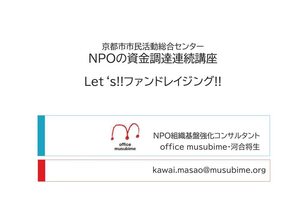 学んだことを生かして、助成金の採択率をアップしたり、寄付金の集金力を高めたりしていきたいと思います。また、一緒に活動していく仲間を増やすことにも、学んだことを生かしたいと思います。